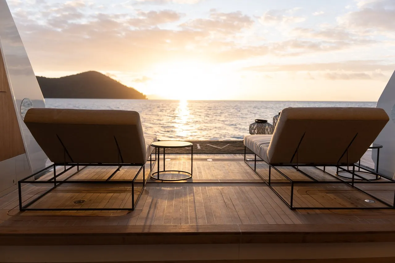 Providing extraordinary guest areas, AIX is the perfect charter yacht. Her gigantic beach club offers 100 square meters of usable space, presented through 3 hydraulic openings connecting the ocean.