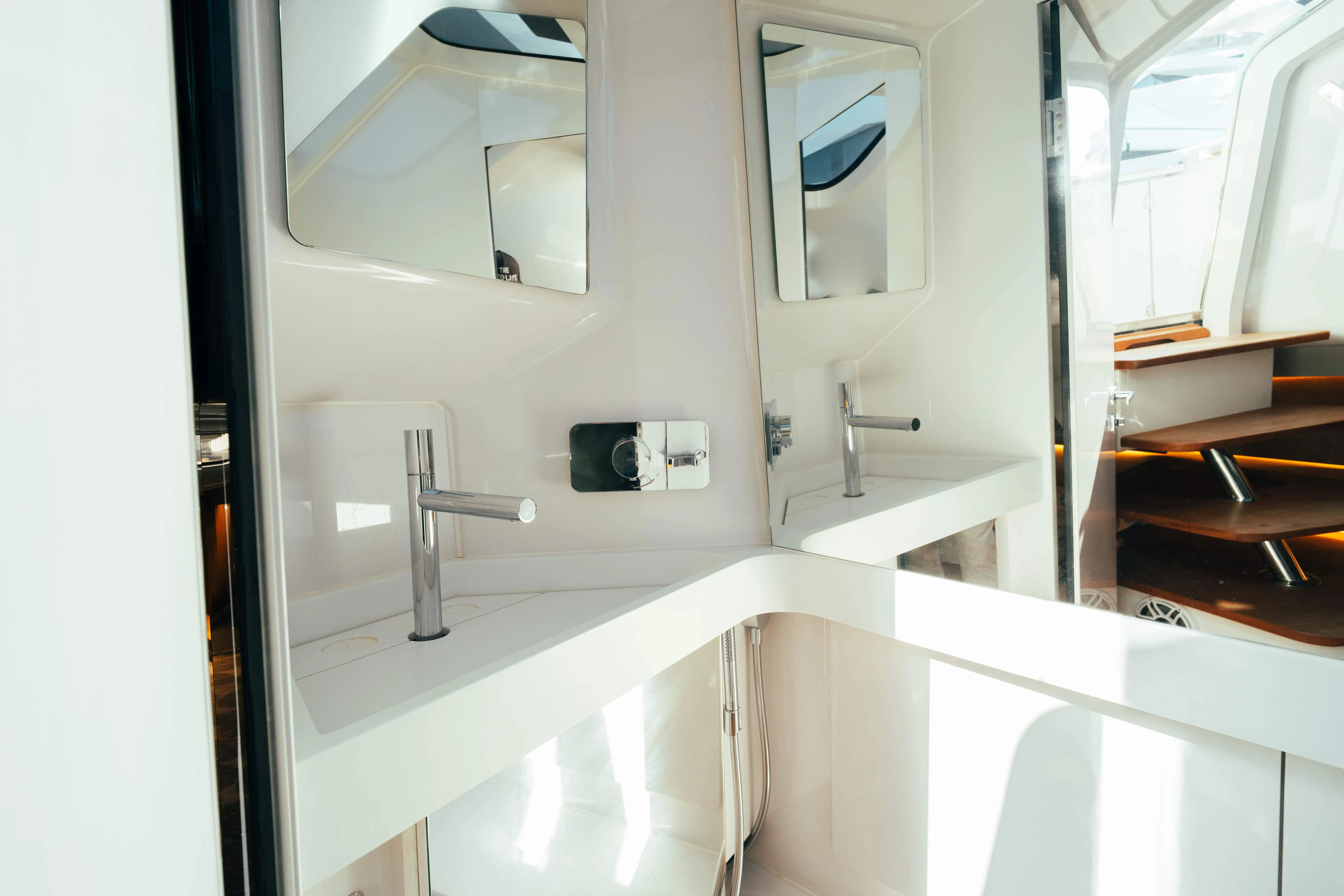 The outdoor areas are purpose-built for socialising and relaxation, from the oversized aft sunpads to the generous swim platform that makes dips effortless. Forward and aft sunshades offer protection on warmer days, while a hardtop above the helm and elegant teak decking bring structure and style. An integrated cockpit bar features a grill, refrigerator, and ice maker, deal for onboard entertaining. Every inch has been designed for comfort, practicality, and maximum enjoyment on the water.
